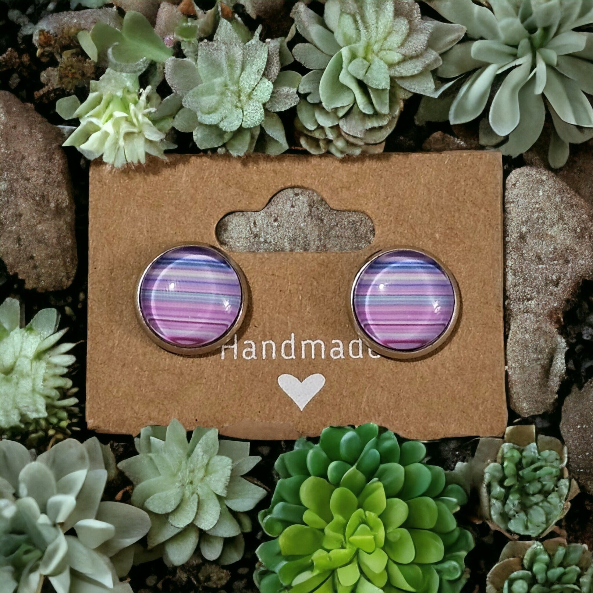 Festive striped resin designs fitted onto a silver stainless steel backing. Measures 1/2" in diameter. The perfect compliment to a Christmas gift or to complete your outfit for your company Christmas party! Great quality and durability!