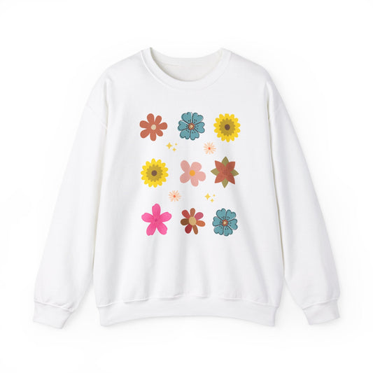 Womens Junior Boho Flowers Unisex Heavy Blend™ Crewneck Sweatshirt